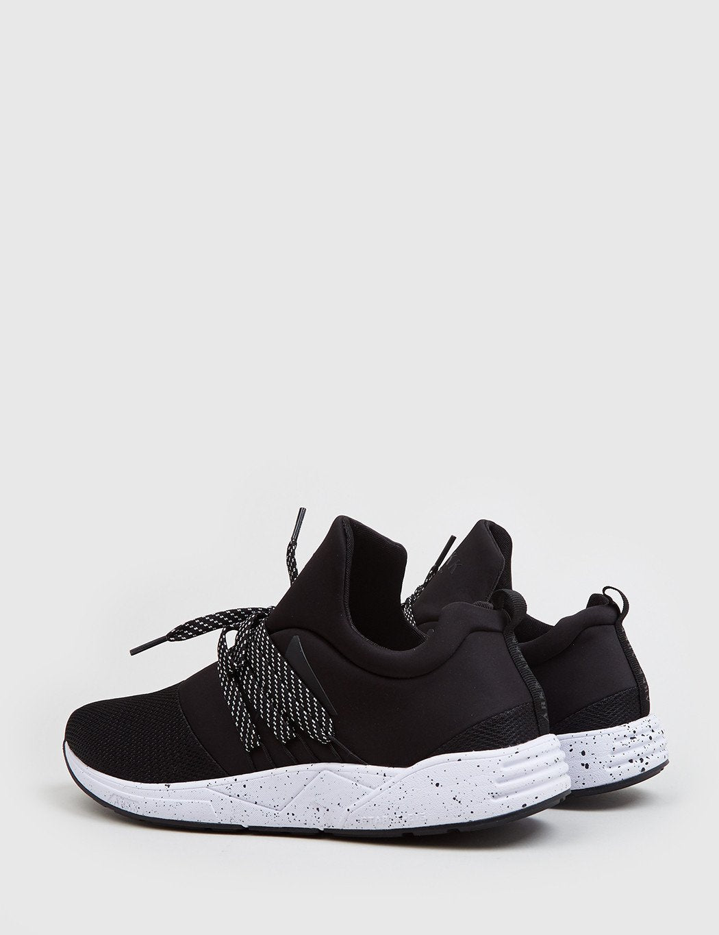 The Raven S-E15 is a classic low-cut trainer. It features mesh and neoprene panel uppers, contrast textured laces, spray effect soles and high tongue.