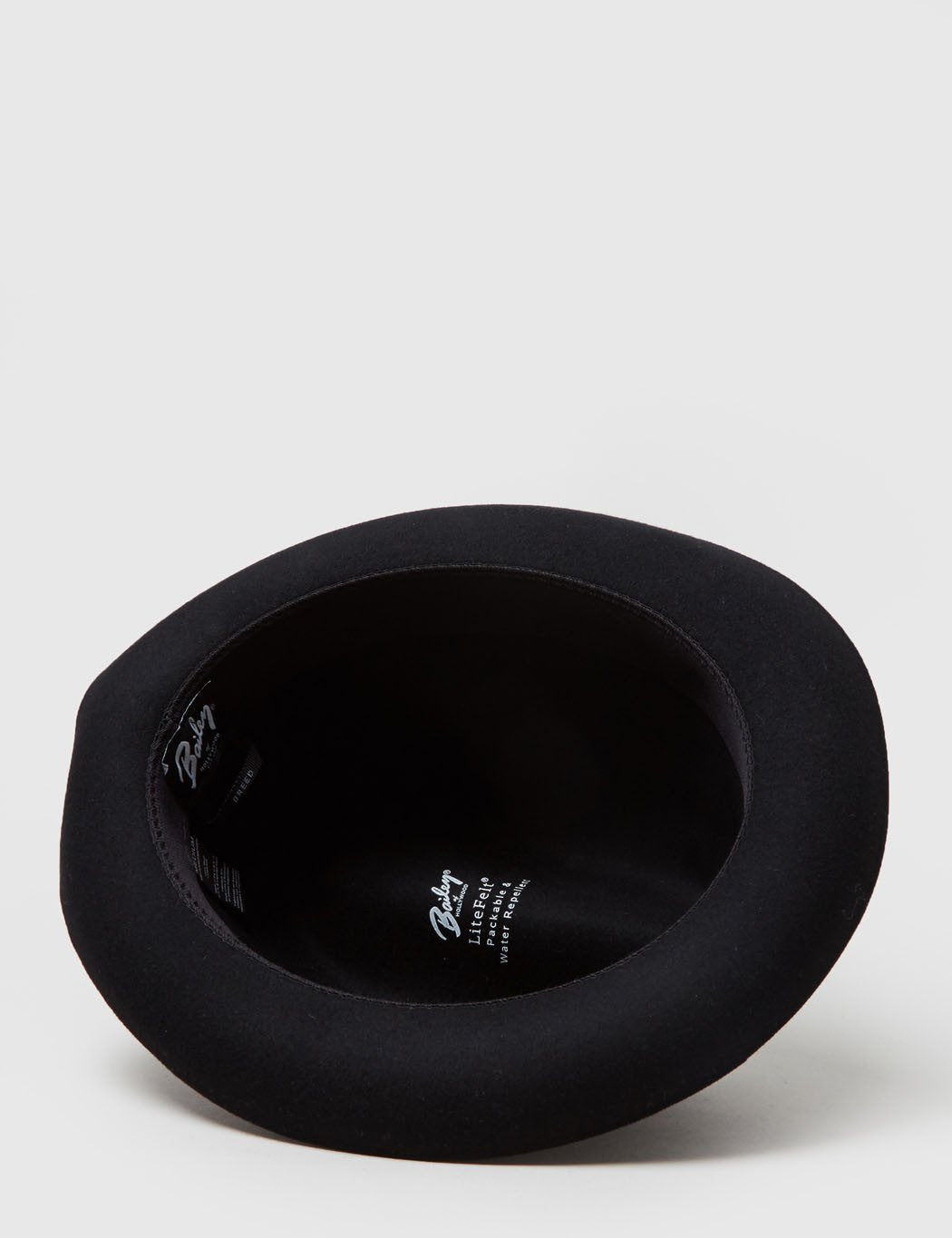 The Bailey Chipman fedora hat in black from the Bailey hats Spring/Summer 2016 collection. The 4oz LiteFelt is durable, packable and water resistant. Proudly made in the U.S.A.