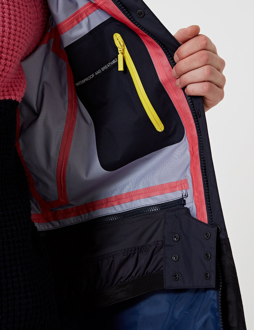 The Amager is a waterproof and reversible jacket from Wood Wood's 15th anniversary collaboration. It features raglan sleeves, single chest pocket, two front pockets with push buttons, hidden zip closure, detachable hood and brand embroidery.