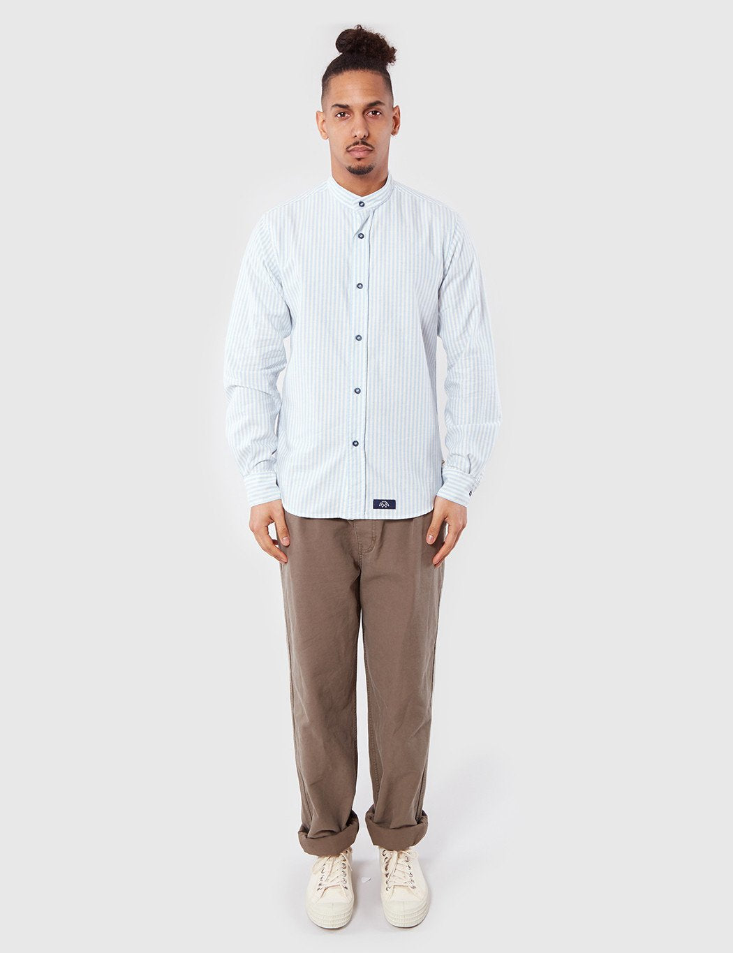 The Bleu De Paname Biaude grandad collar shirt in Ciel blue from the Bleu De Paname t-shirts Spring/Summer 2017 collection.