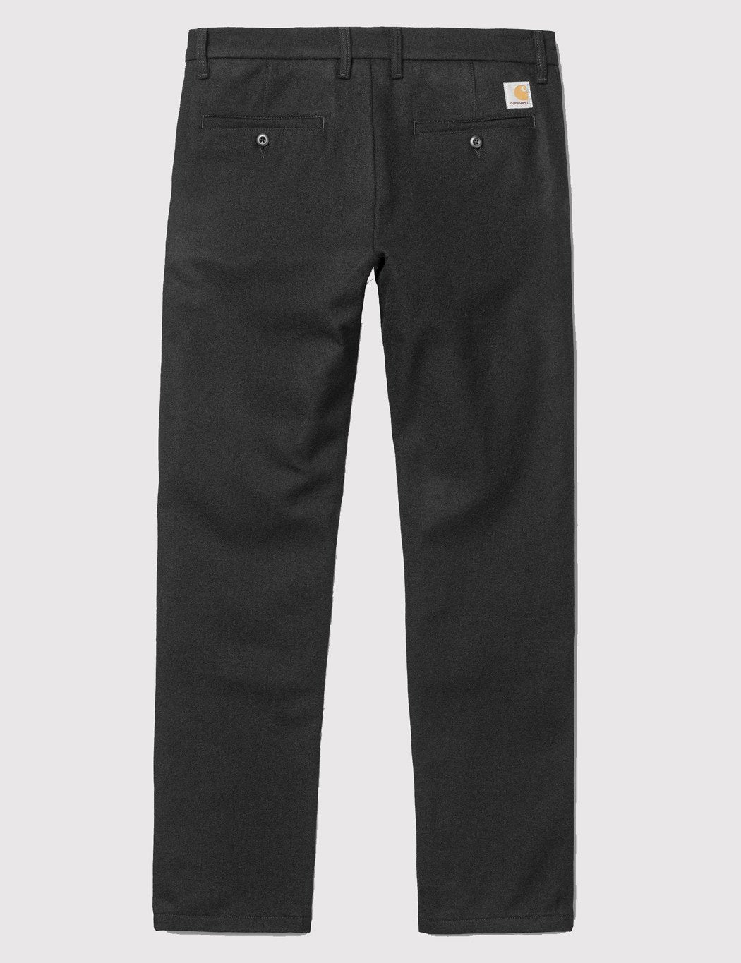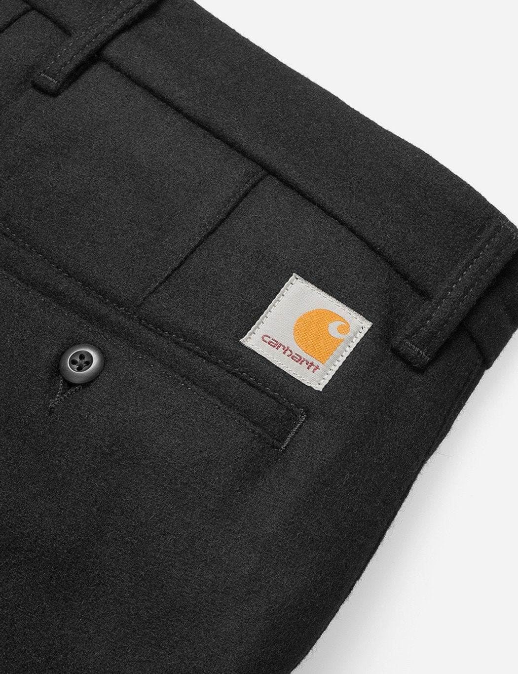 The Carhartt Johnson wool pant in Black from the Carhartt Fall/Winter 2016 collection. They are lined and feature a low waist, bartack stitching, zip fly and a square label.