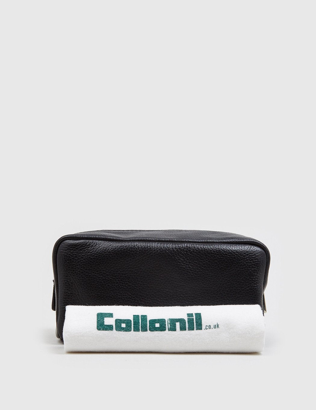 The Collonil Leather shoe cleaning kit includes a cow-hide black travel bag, 1 x 100ml waterstop spray, 1 x natural horse hair polishing brush, 1 x 100ml waterstop spray and soft lindt free Collonil cloth.Product MPN: 0034