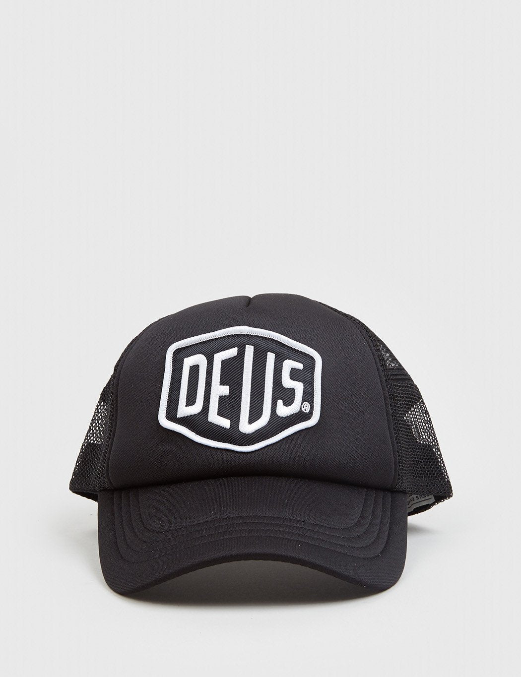 The Deus Ex Machina Baylands Trucker cap in Black with White embroidery from the Deus Fall/Winter 2016 classics collection.