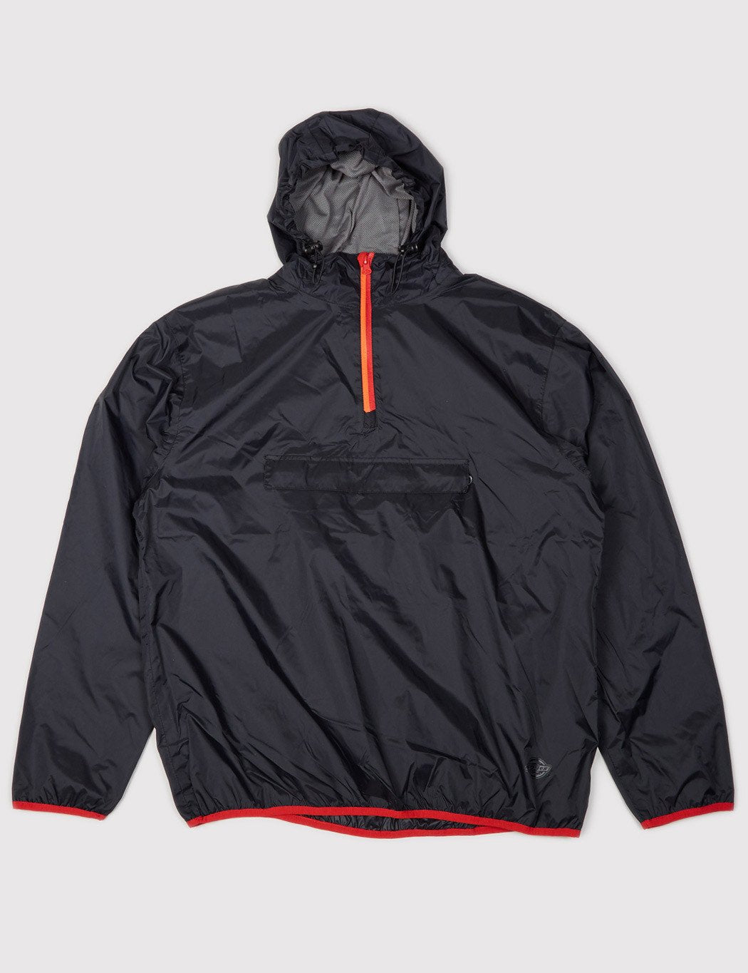 The Dickies Saint Cloud overhead rain jacket in black from the Dickies jackets Spring/Summer 2016 collection. The Saint Cloud is a super light weight, technical and weatherproof single shell, pullover jacket from Dickies.