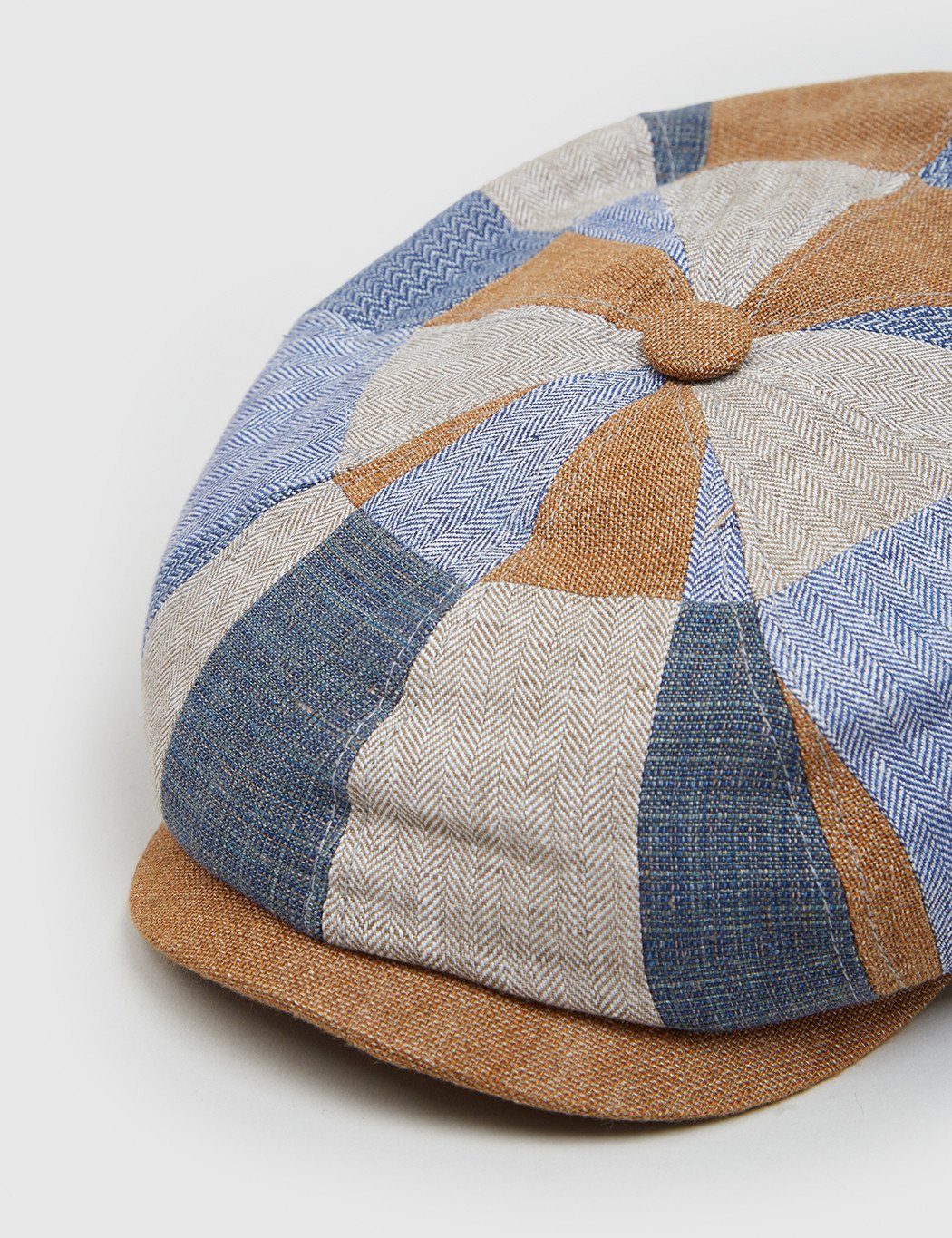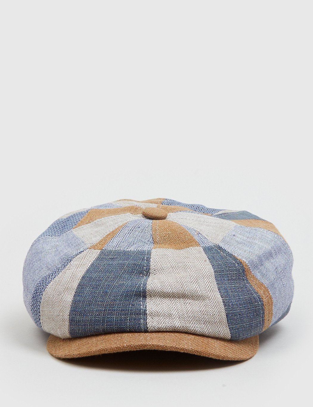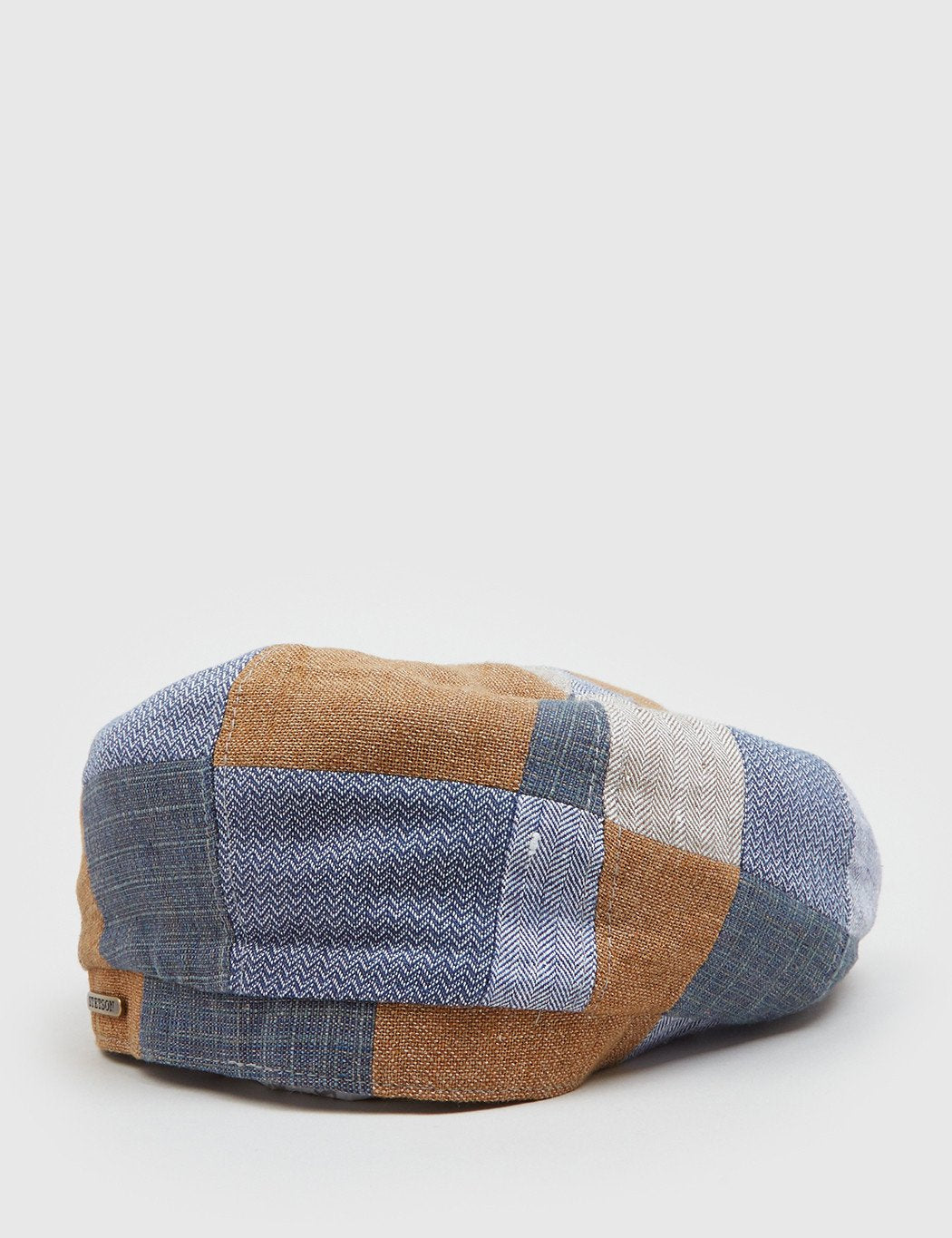 The Stetson Hatteras Patchwork newsboy cap in Blue, Brown and Khaki from the Stetson hats Spring/Summer 2017 collection.